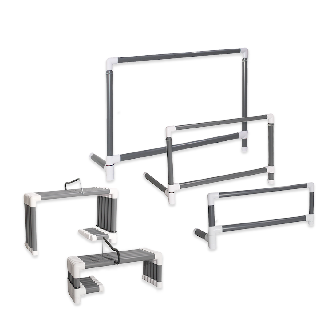 These lightweight training hurdles have a single supporting leg that rotates to either side of the hurdle for quick set up, as well as for easy storage and transport.A 3-point base system ensures the hurdle remains steady even on uneven turf and decreases chance of stepping on legs when hurdles are close together.
