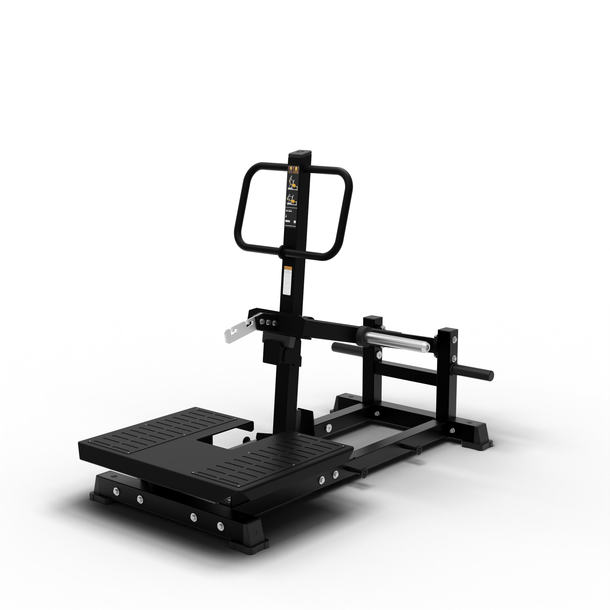 The Plate Loaded Belt Squat is designed to increase leg and hip strength and makes squatting with a vertical spine much easier while alleviating stress on the back. It offers multiple starting positions and features stainless steel anti-slip footplates for additional stability during exercise. 38mm rubber ribbed handles provide great comfort and feature caped anodised aluminium ends for additional protection.