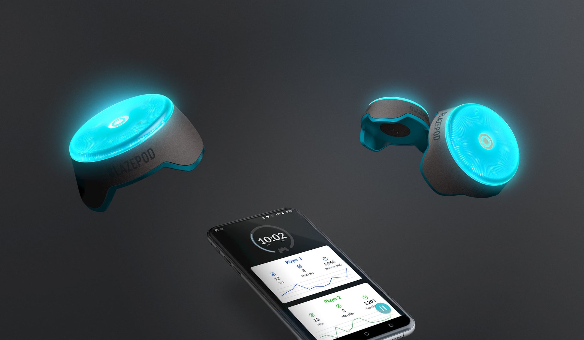 Tap-sensitive pods powered by the BlazePod app provide visual cues, creating the ultimate Flash Reflex training system. BlazePod motivates you to react faster, push your limits and boost your performance. Activate a predefined activity or create your own. Challenge yourself or compete against others. Track data in real-time to improve fitness, technique and tactics.