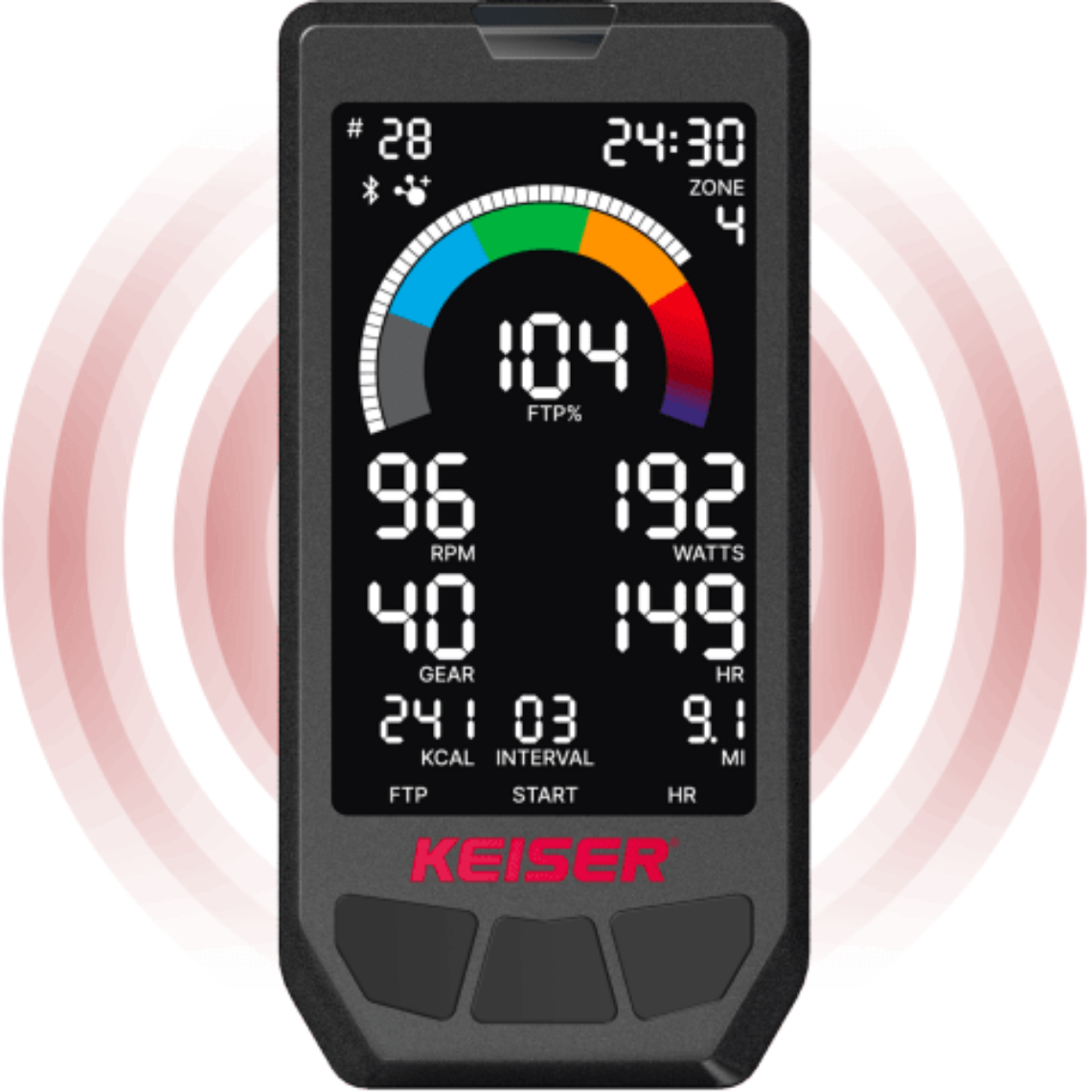 The new Studio model includes the new Studio full colour console which displays RPM, power (Watts), gears (1/72), speed, distance, calories and heartrate.