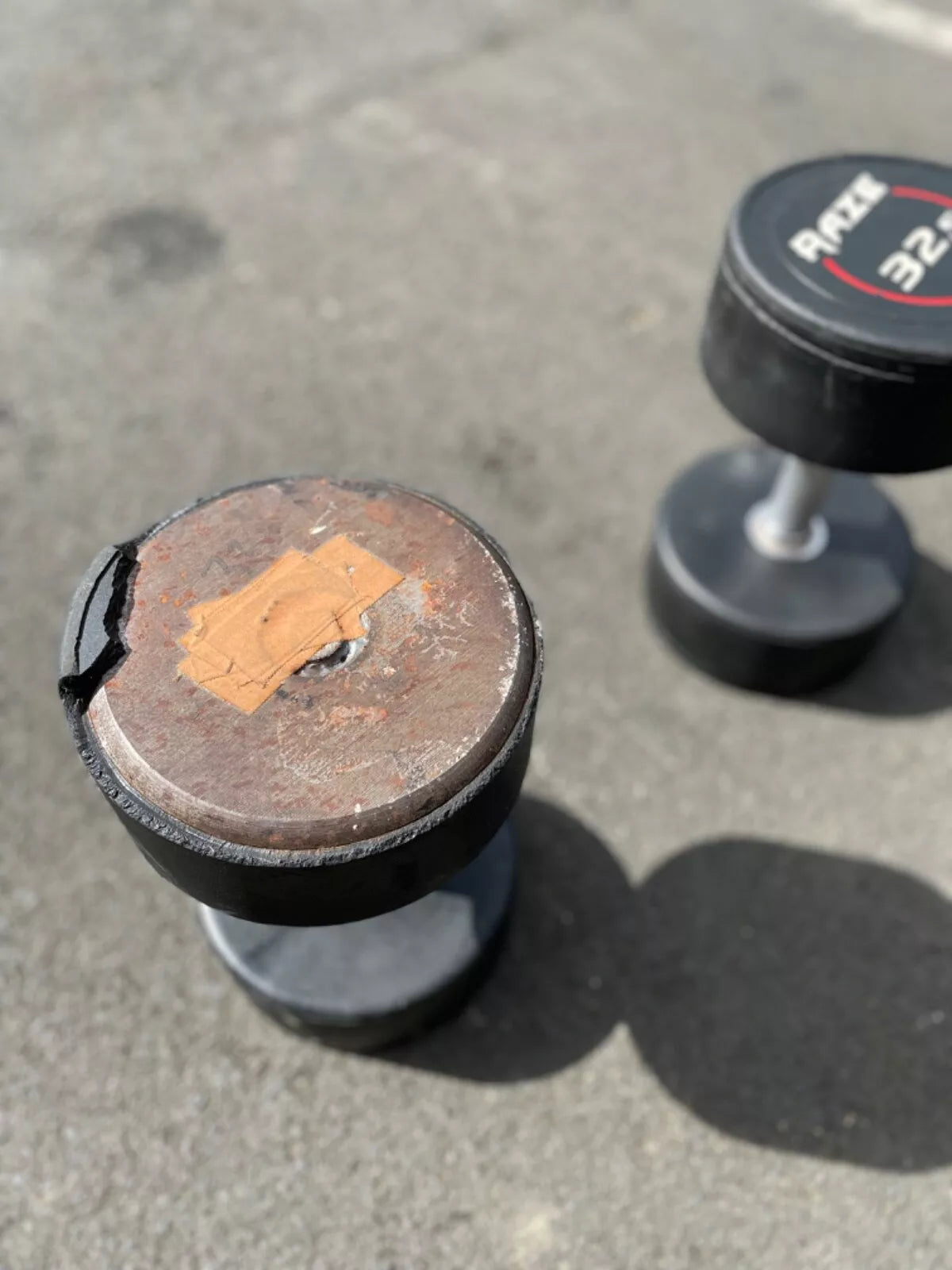 Used Dumbbell Set. One missing end cap. Priced to reflect imperfection. Still functions at listed weight.