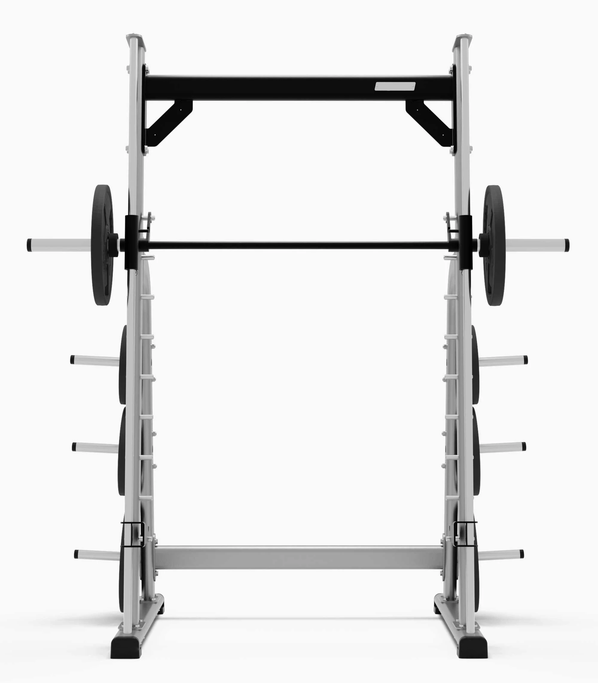 The PB Plate Loaded Smith Machine is a versatile station that can be used for various exercises – including bench work, squats, deadlifts, hip thrusts and more. The frame is angled at 5 degrees for a biomechanically correct motion. It features stainless steel pins, high quality linear bearings, and adjustable safety stops. This machine is made with 100x50x3mm Flat Sided Oval and is fully commercial with a lifetime warranty on the main frame. 6 storage points for weight plates are included as standard.